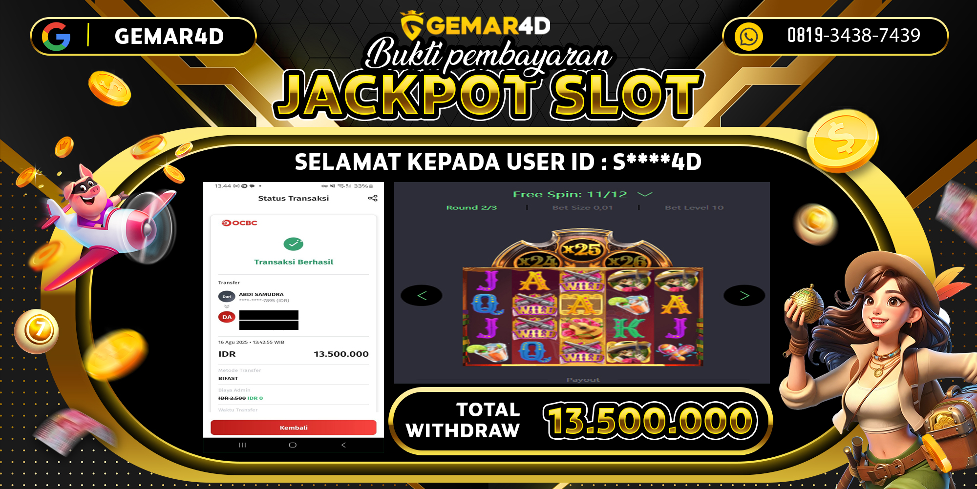 Selamat atas kemenangan User ID : J***T22, yang telah berhasil mendapatkan kemenangan di permainan SLOT GATES OF OLYMPUS dengan kemenangan sebesar Rp13.208.000,- . Setelah mengisi formulir withdraw, hanya dalam jangka waktu 2 – 5 menitan tim layanan pelanggan GEMAR4D telah berhasil mengirimkan semua saldo kemenangan ke User ID tersebut.
